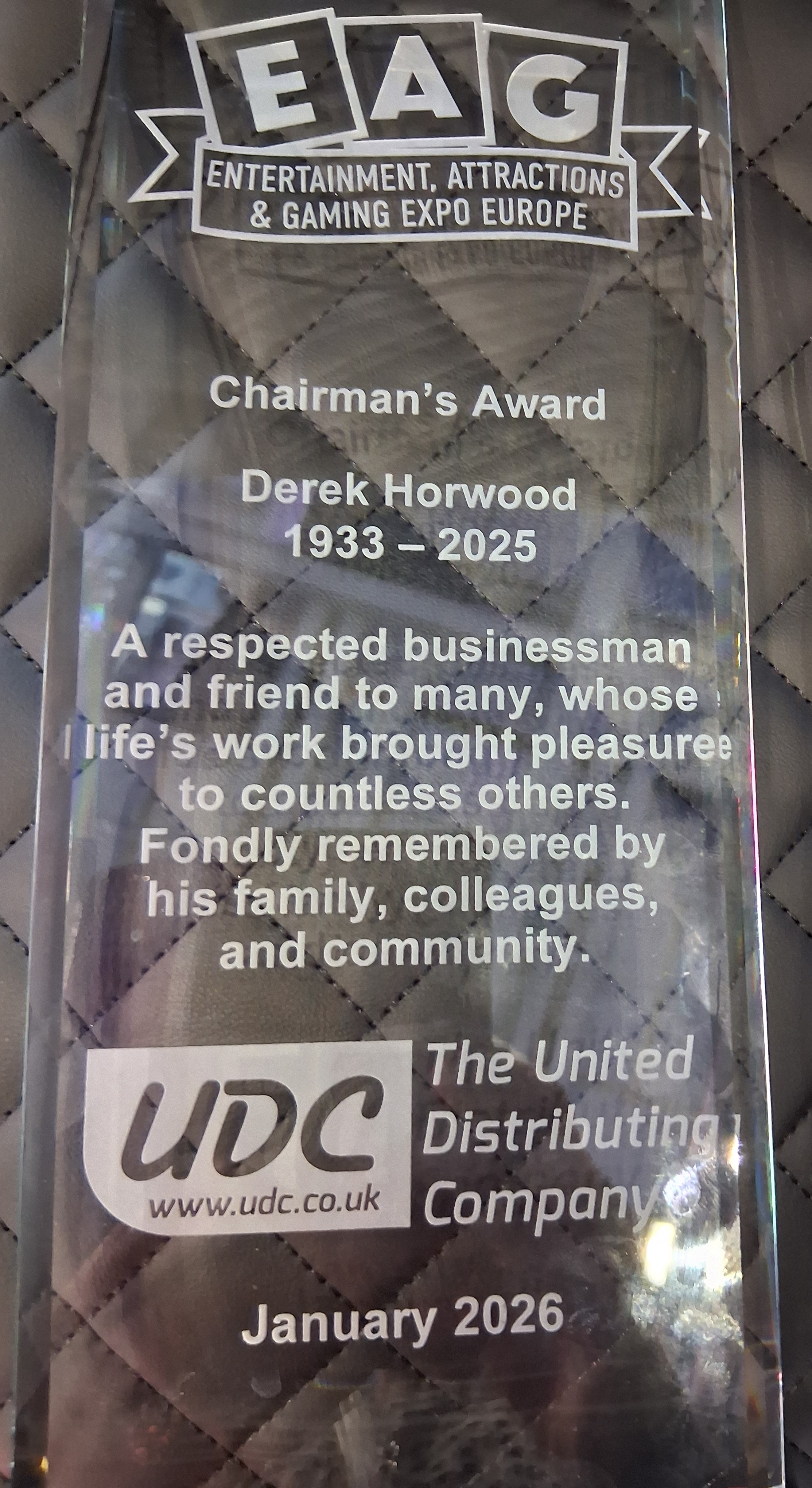 Alan Walker received an award at the BACTA Awards event for his long- standing service to the industry, well done Alan. I met Alan some years ago through the late Roy Deeming and Alan was one of his customers and they enjoyed many a meal of fish and chips together on Brighton Pier., where Alan was based at the time with the noble Organisation. Congratulations Alan on your award and truly deserved, and of course we had to have a photo of the two of us together.