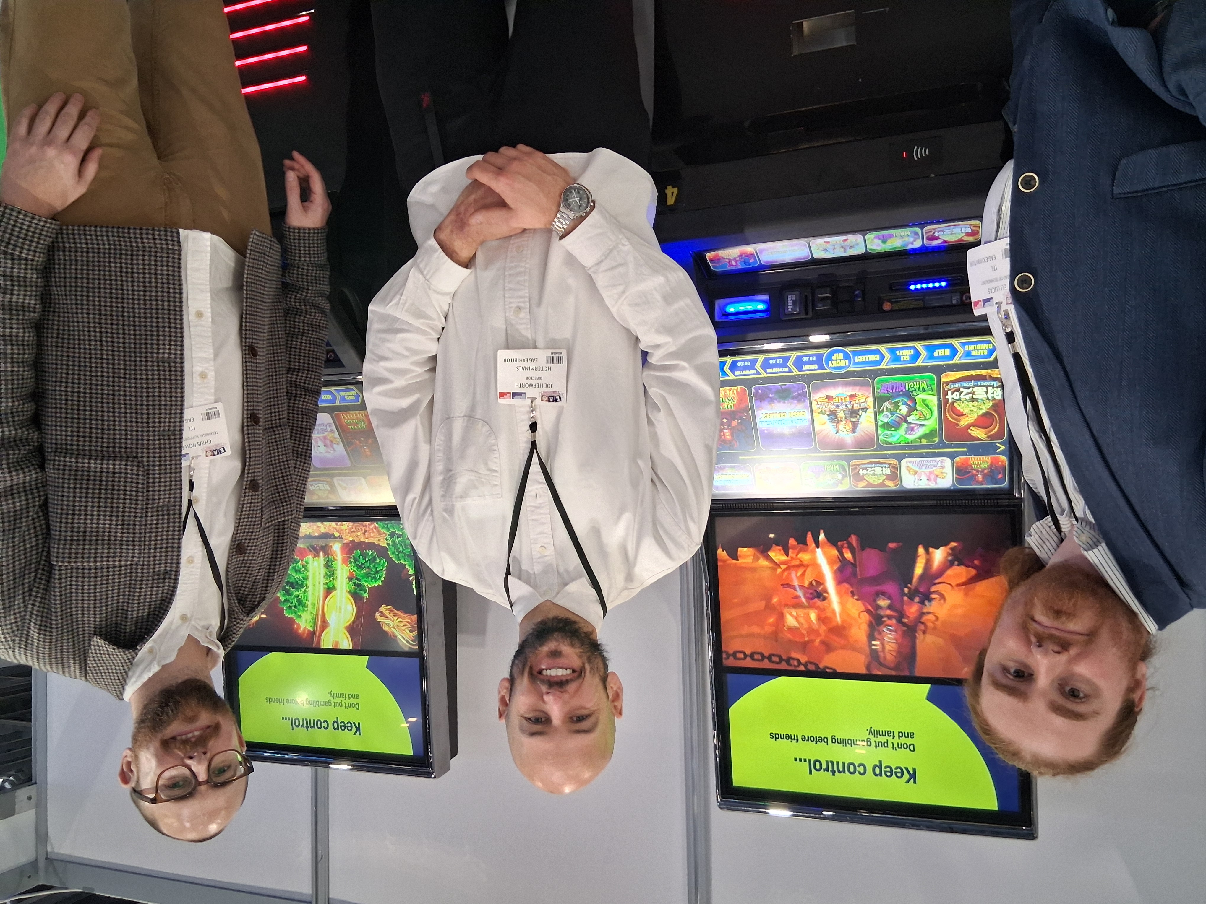 HC Terminals and Inspired Technology (ITL) shared a stand and with their recent collaboration between the two companies they offered a new entrant B3 cabinet Odyssey to the market offering both cost effective and high- performance solutions for both the AGC and Bingo Market. Odyssey has two new exclusive casino type games Devil Wilds Deluxe and Leaves of Fortune, plus still offering the popular Fluffy Favourites to a B3 cabinet for the first time ever, all the content on Odyssey is tried and tested and powered by ITL’s latest Orbital platform which has been in development for two years. HC Terminals Joe Hepworth was extremely upbeat about the product and had great visions for it and also stated they were very happy to step into the B3 market. The photo shows HC Terminals Joe Hepworth and ITL’s Eli Lucas and Chris Bower